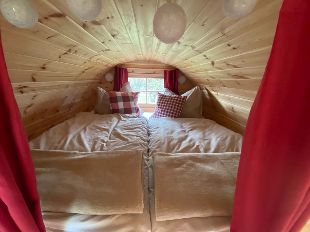 Unsere liebevoll gestalteten Schlaffässer bieten Ihnen ein außergewöhnliches Übernachten im Fass mit hohem Komfort und natürlichem Charme. Mit einer großzügigen Liegefläche, gemütlichen Sitzmöglichkeiten und durchdachtem Stauraum genießen Sie ein einzigartiges Wohngefühl auf rund 8m². Die hochwertige Ausstattung mit Matratzen, Bettwäsche und moderner Infrarotheizung sorgt für erholsame Nächte zu jeder Jahreszeit.